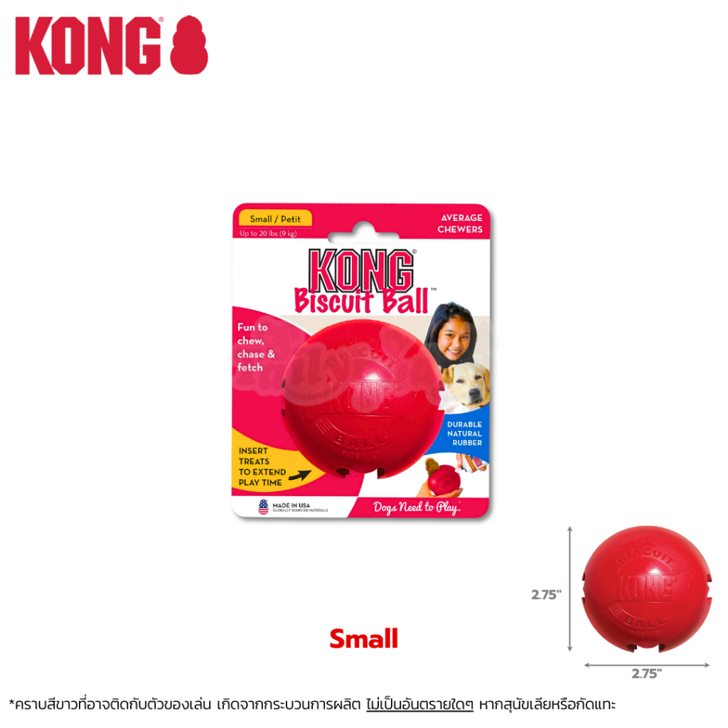 KONG Biscuit Ball บิสกิตบอล ของเล่นยางคุณภาพสูง แข็งแรงทนทาน ใส่ขนมได้ (S, L)