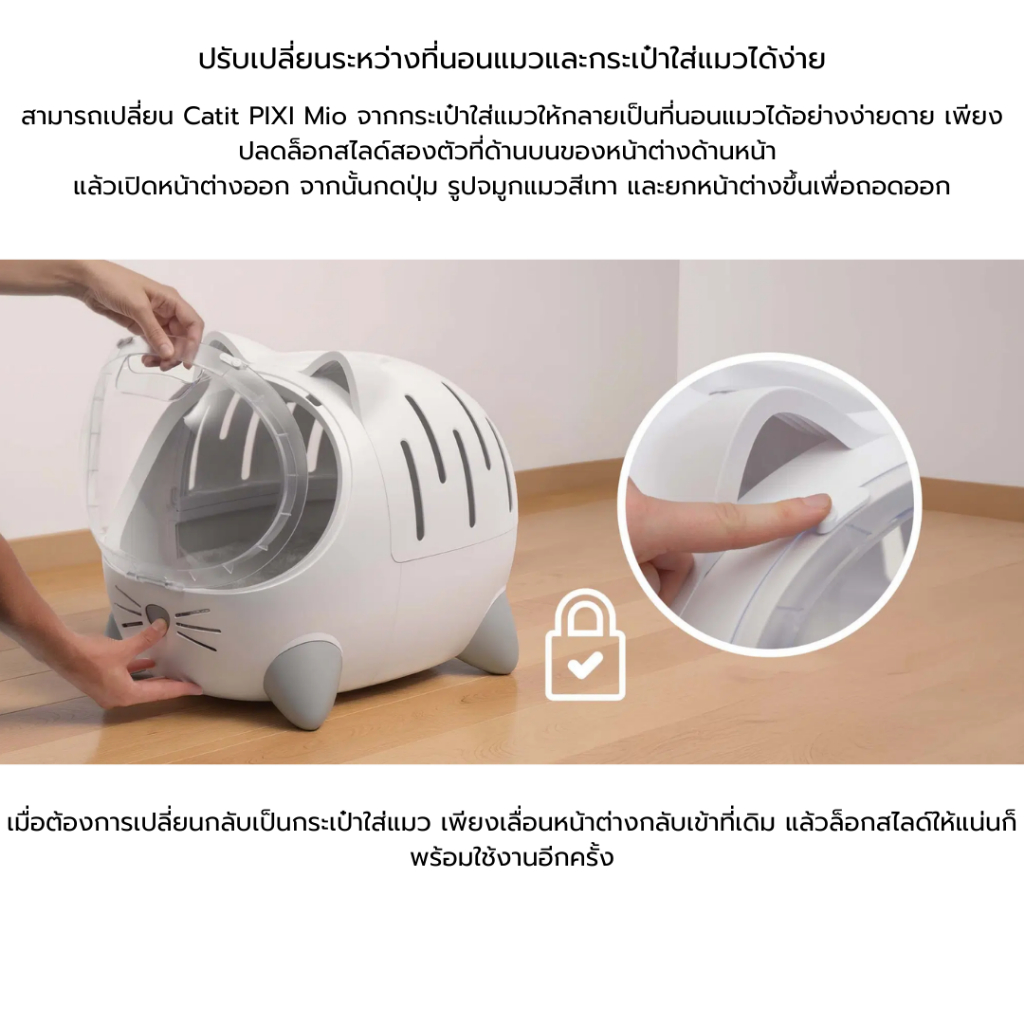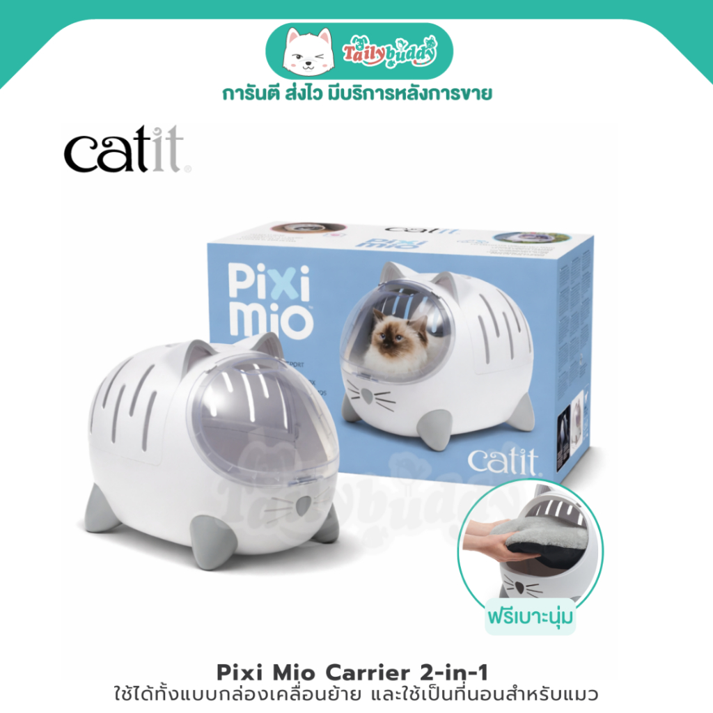 Catit Pixi Mio กล่องเคลื่อนย้ายสำหรับแมว 2-in-1 ใช้เป็นกระเป๋าพกพา หรือที่นอนน้องแมว (แถมฟรีเบาะในกล่อง)