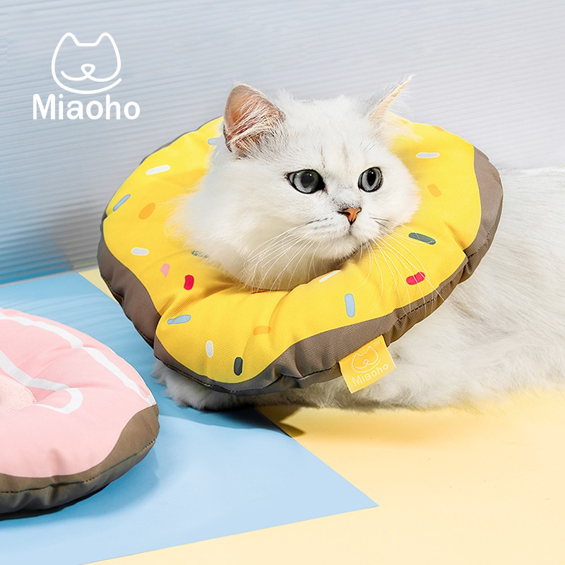 Miaoho Yellow Donut Collar - ปลอกคอแมวกันเลีย ทรงโดนัทสีเหลือง สวย นุ่ม ใส่สบาย ป้องก ันแมวเลียแผล