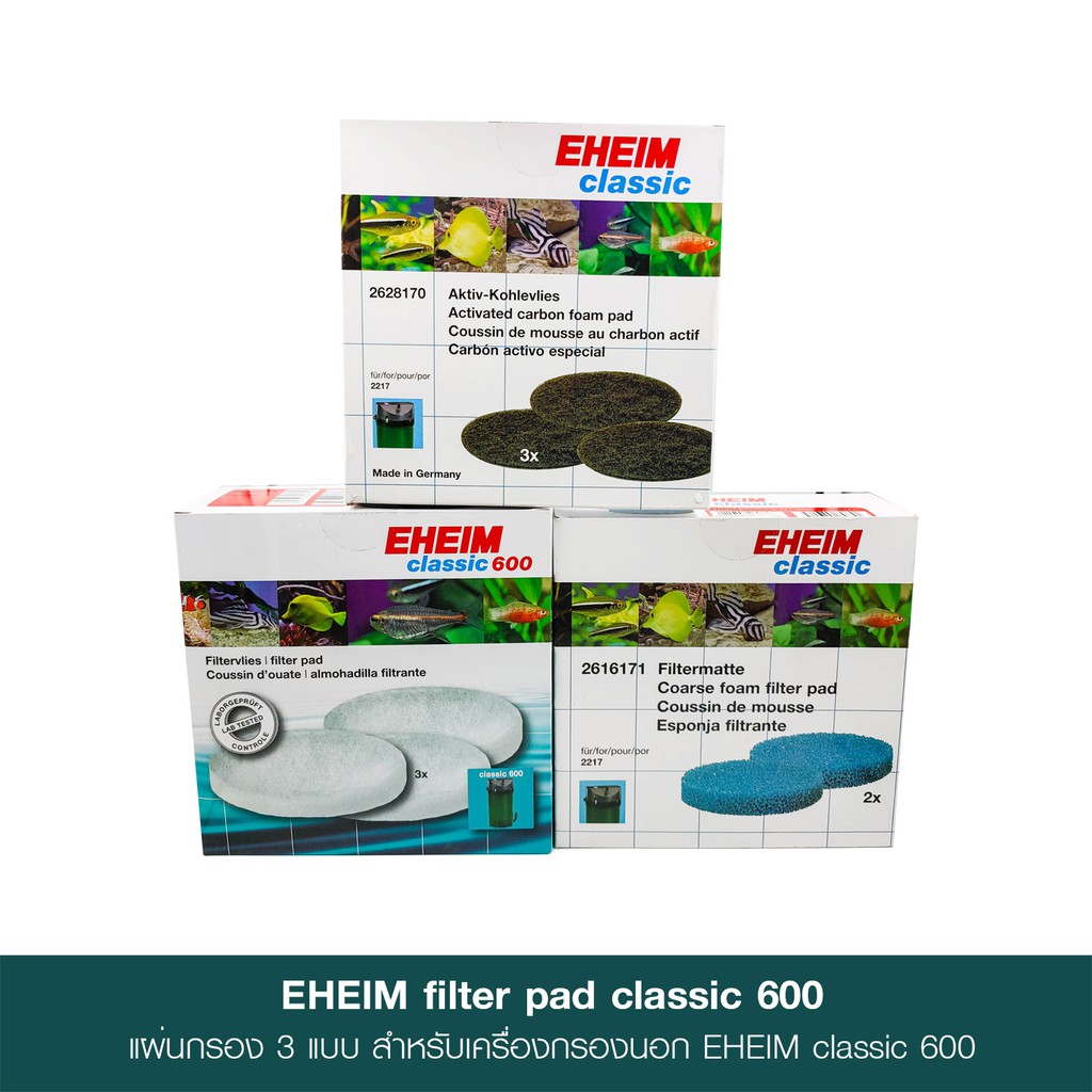 EHEIM Filter Pad 600 - แผ่นกรอง 3 แบบ เปลี่ยนทดแทนสำหรับเครื่องกรองนอก EHEIM รุ่น classic 600