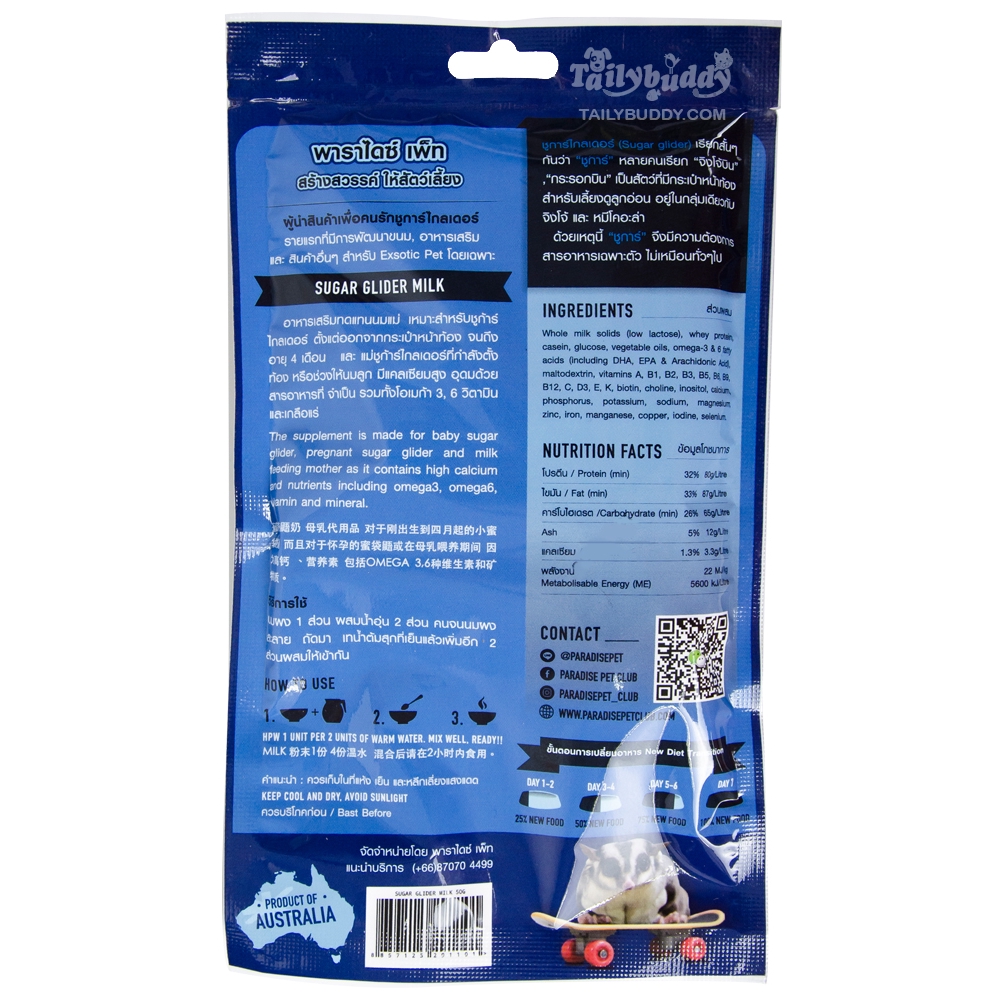 Paradise Pet นมชูการ์ นมทดแทนนมแม่ บำรุงครรภ์ สำหรับชูการ์ไกลเดอร์วัยเด็กหรือช่วงตั้งครรภ์ (50g)