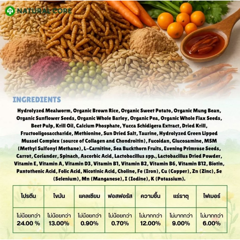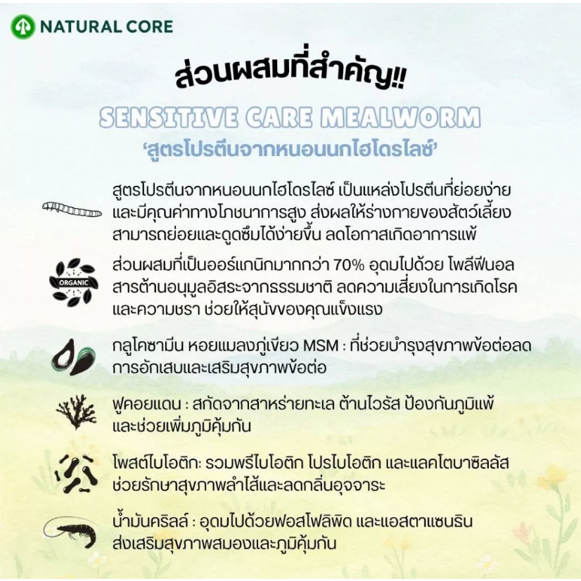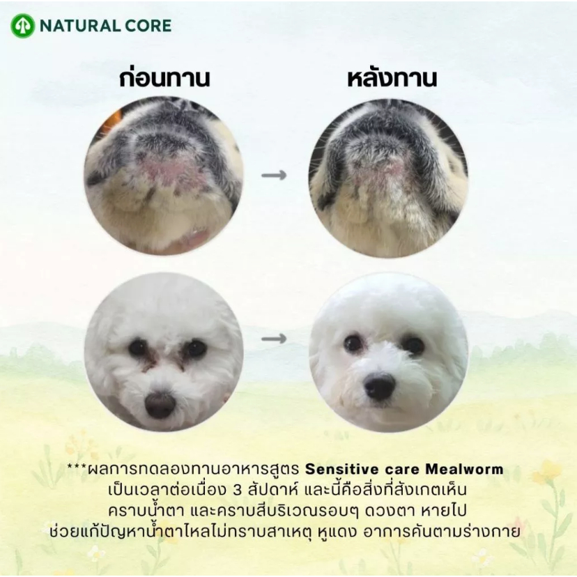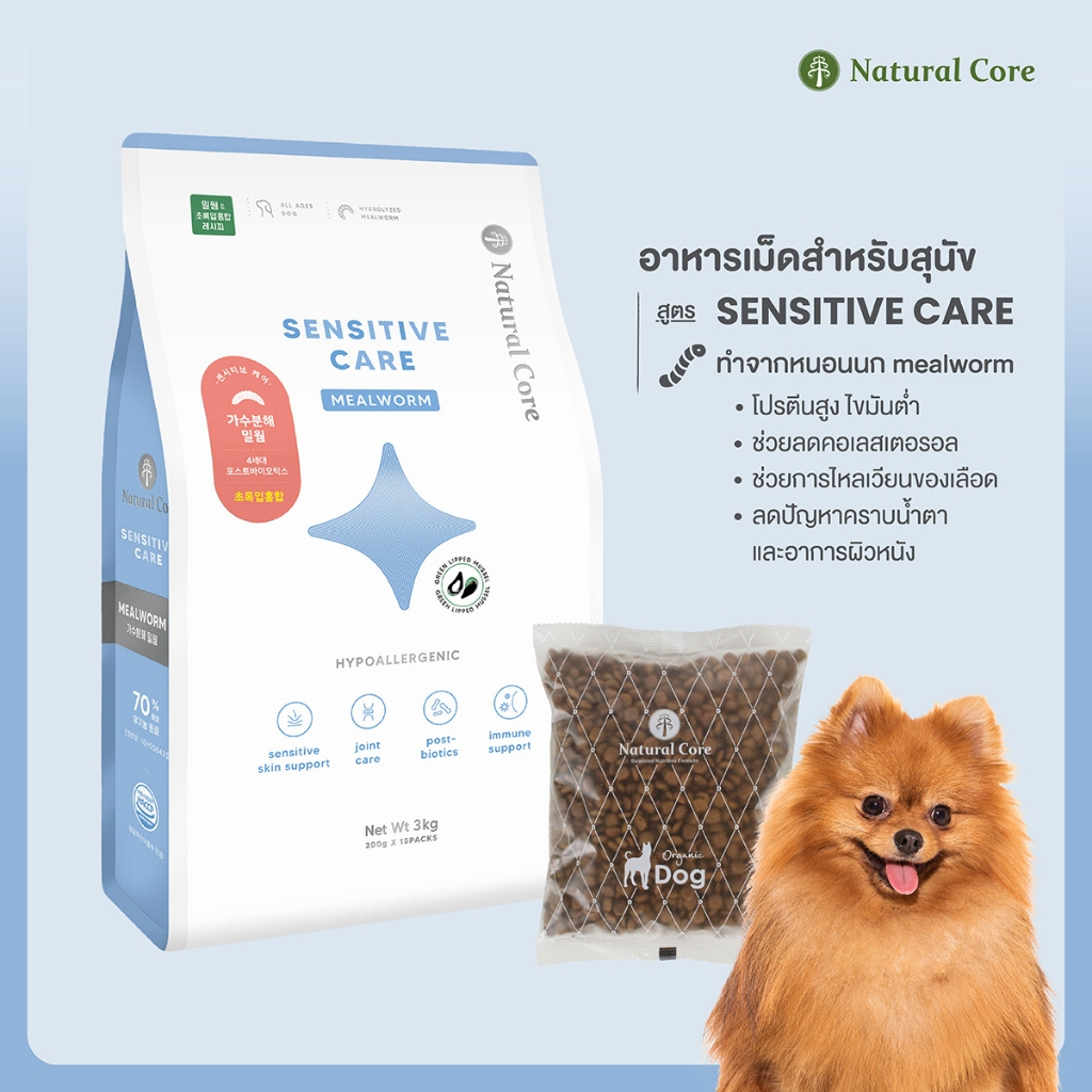 (2.4kg) Natural Core Sensitive Care Mealworm อาหารเม็ดสุนัข สูตรโปรตีนจากหนอน สำหรับสุนัขแพ้ง่าย & มีปัญหาคราบน้ำตา