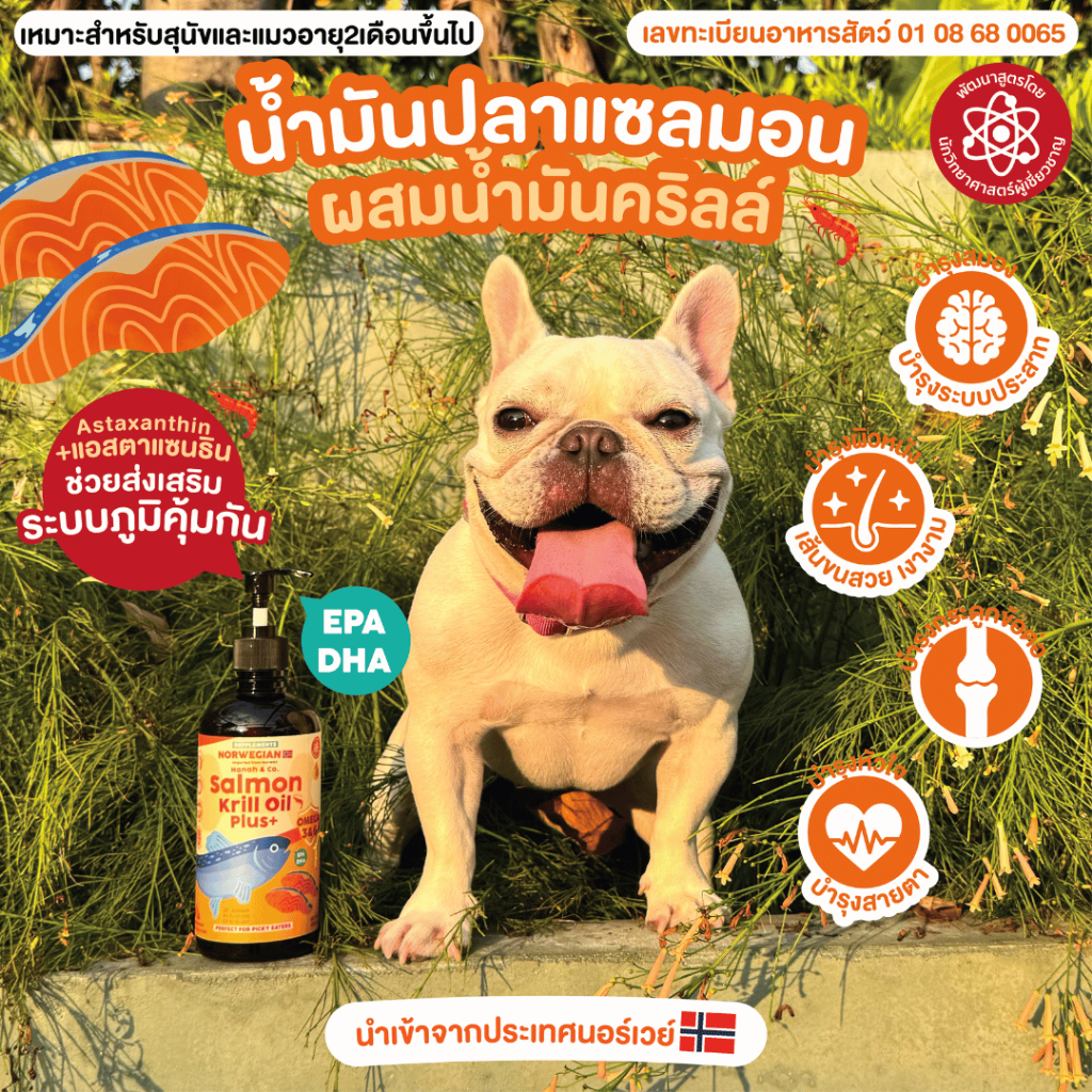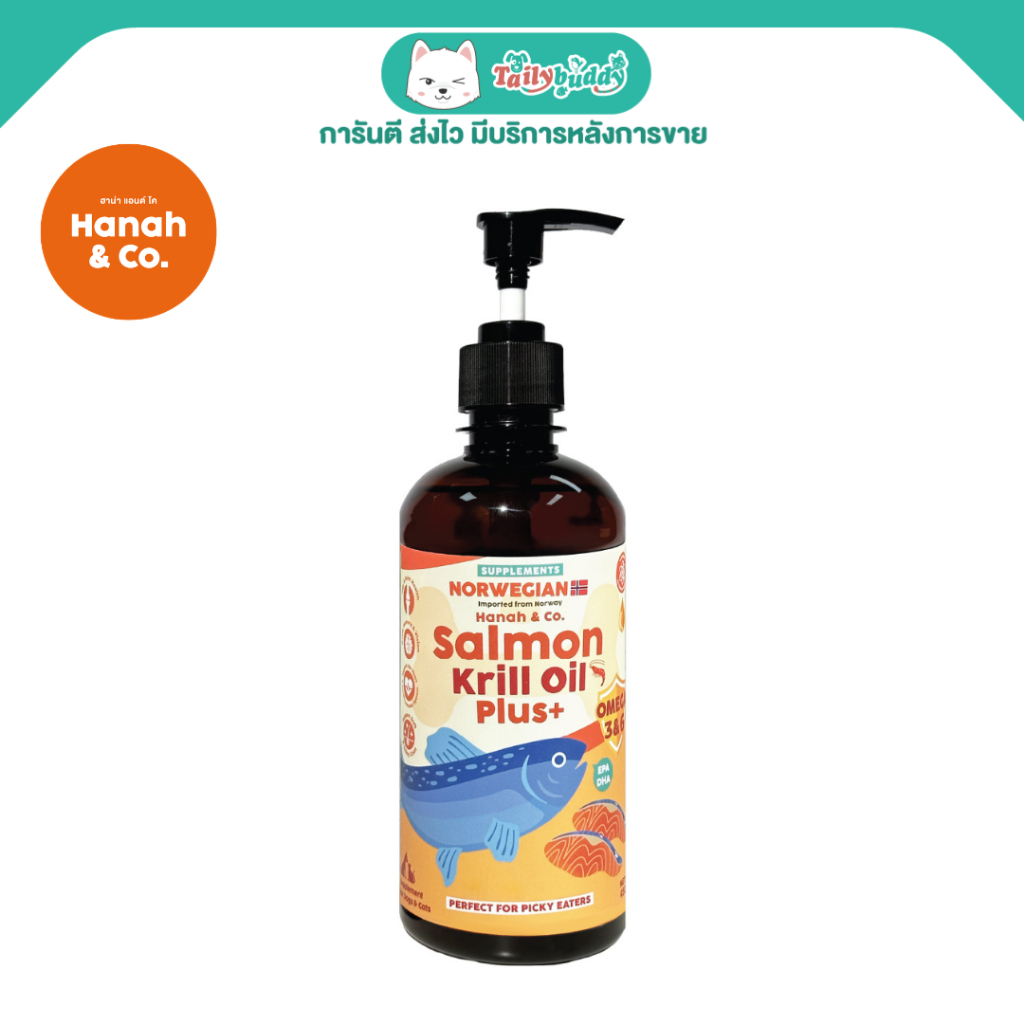 Hanah & Co น้ำมันปลาแซลมอนผสมน้ำมันคริลล์ บำรุงขนสำหรับสัตว์เลี้ยง (450ml)
