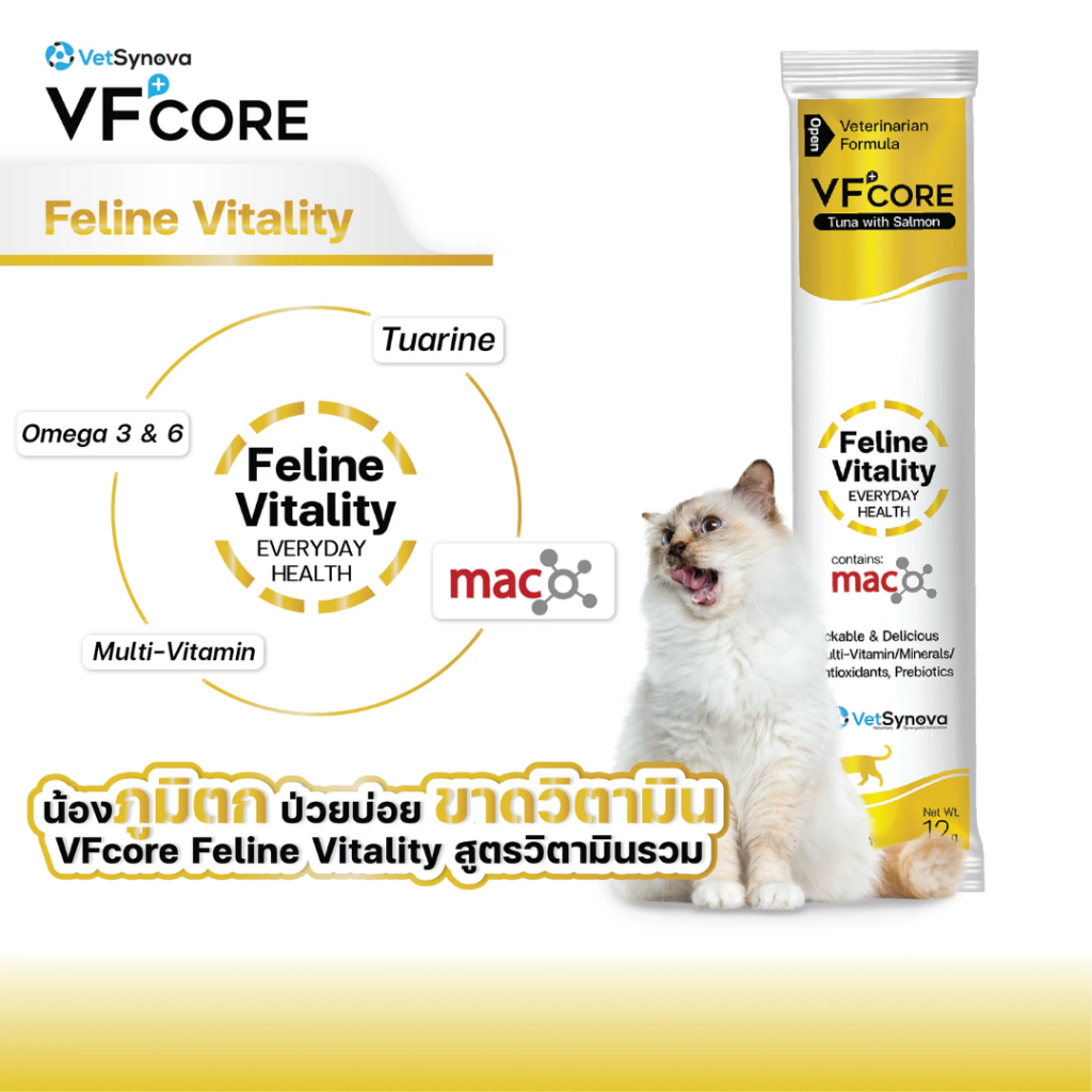 (12ซอง, 30ซอง) VFcore (วีเอฟคอร์) อาหารเสริมแมวเลีย Feline Vitality รสทูน่าและแซลมอน (12g)