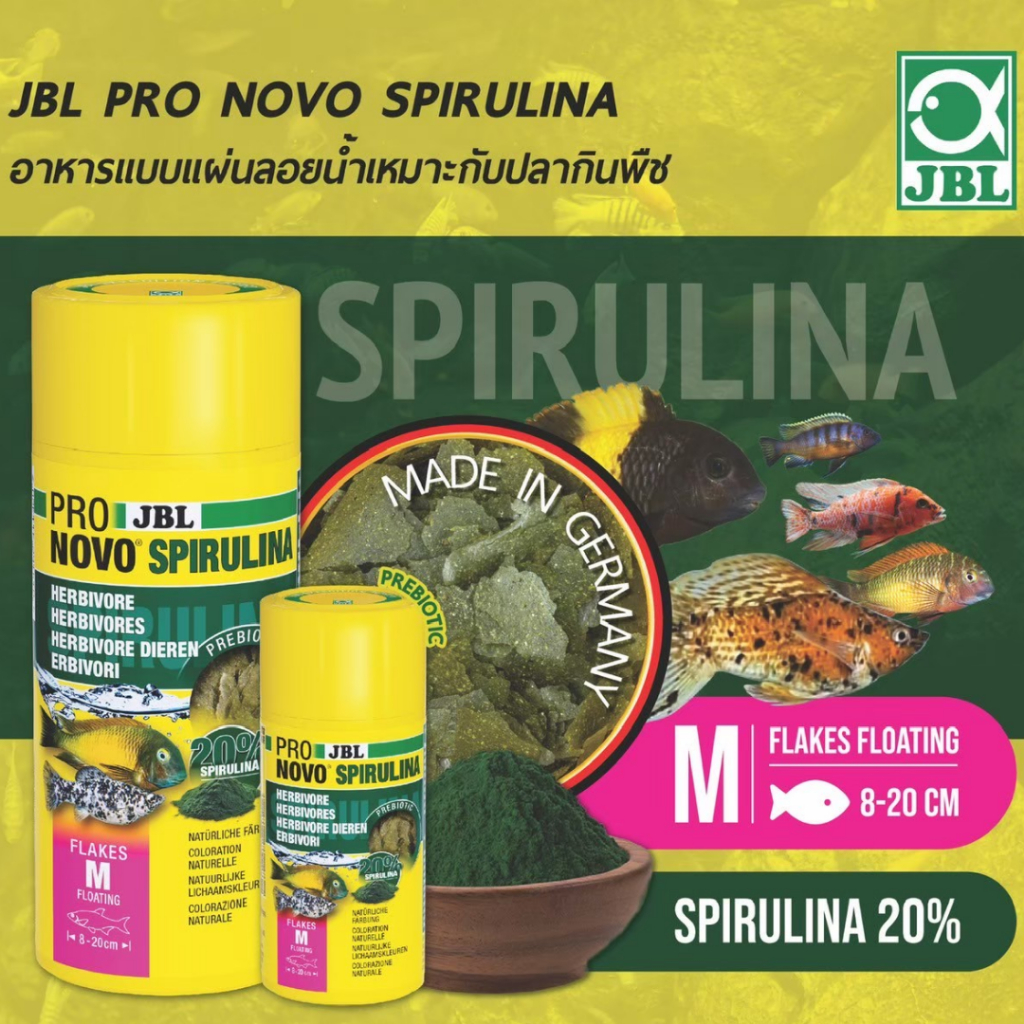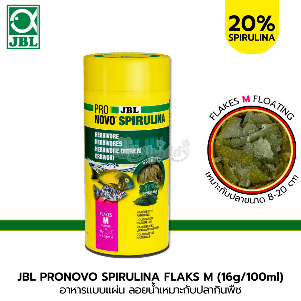 JBL PRONOVO SPIRULINA อาหารปลาสำหรับปลาตู้ปลาทุกชนิด ผสมสาหร่ายสไปรูลินาและพรีไบโอติก สำหรับปลาตู้ปลากินพืช/ตะไคร่น้ำ