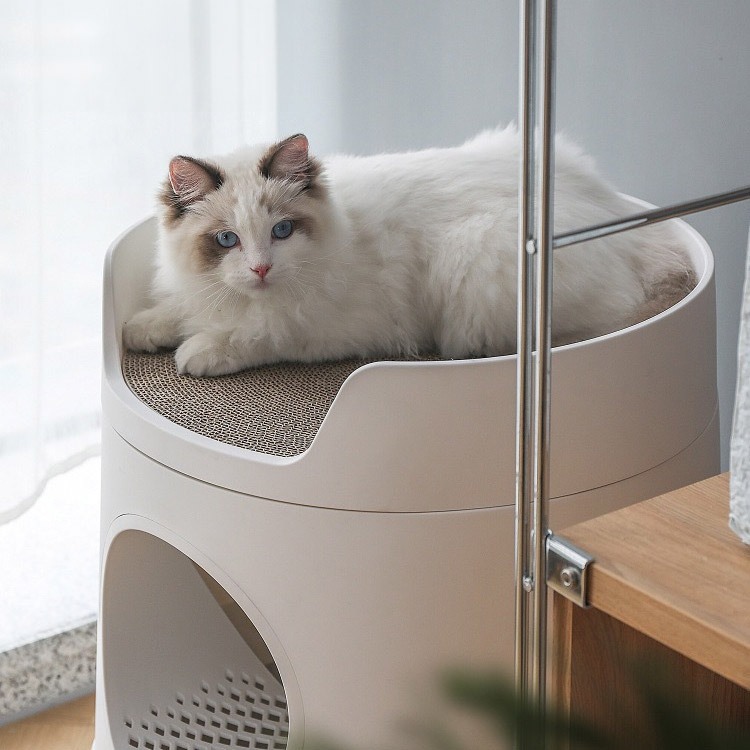 MAYITWILL Castle Cat Litter Box ห้องน้ำแมวปราสาท สวยหรู เก็บกลิ่นดี มีตะแกรงดักทรายในตัว ที่นอนด้านบน เหมาะกับแมวทุกขนาด