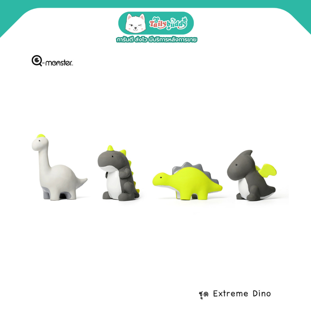Q-monster Exteme Dino ของเล่นสุนัข ชุดตุ๊กตาไดโนเสาร์ ทำจากยางพารา กัดมันส์ เคี้ยวเพลิน มีเสียงร้องเวลากัด ทนทาน