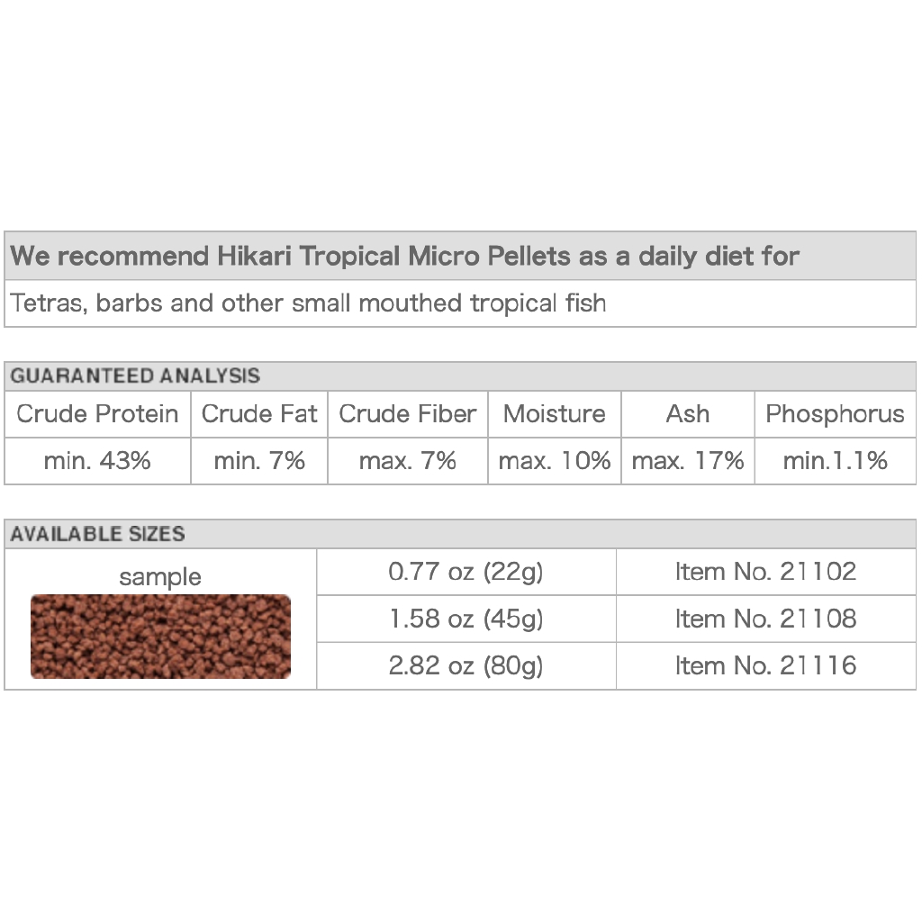 Hikari Micro Pellets อาหารปลาสำหรับปลาน้ำจืดขนาดเล็ก เขตร้อนชื้น (เม็ดลอยกลางน้ำ)