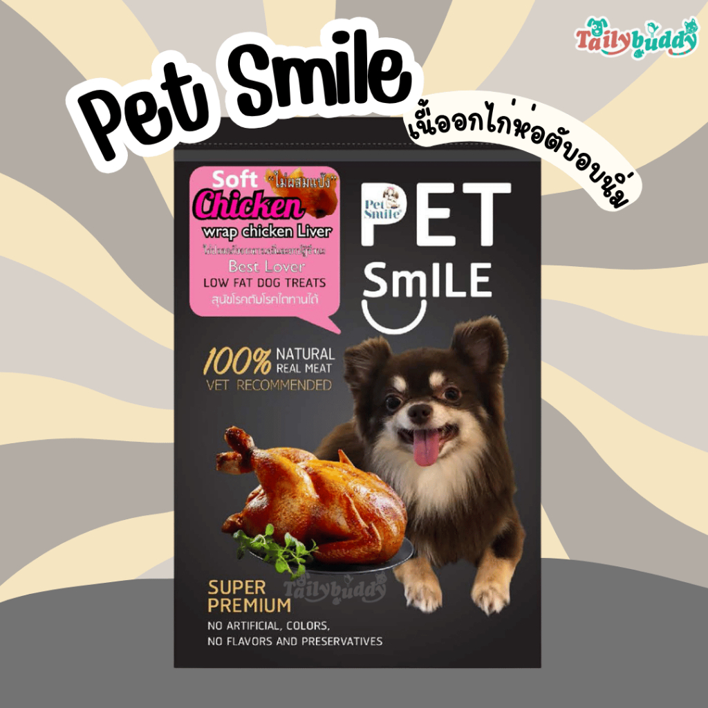Pet Smile Soft Chicken Wrap Chicken Liver ขนมสุนัข เนื้ออกไก่ห่อตับอบนิ่ม หอม น่ากินสูง สุนัขโรคตับ/ไต ทานได้ (50g)