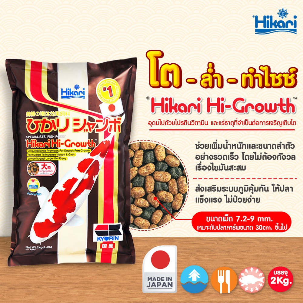 Hikari Hi-growth อาหารปลาสำหรับฤดูร้อนที่อุดมไปด้วยโปรตีน วิตามินและแร่ธาตุที่จำเป็น เม็ดใหญ่ ลอยน้ำ (2kg)