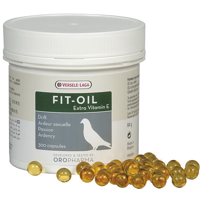 OROPHAMA - Fit-Oil Extra Vitamin E อาหารเสริมนก ฟิตออย เสริมสร้างพลังงานในตับ นกพิราบแข่ง ไก่ (300แคปซูล), Versele Laga