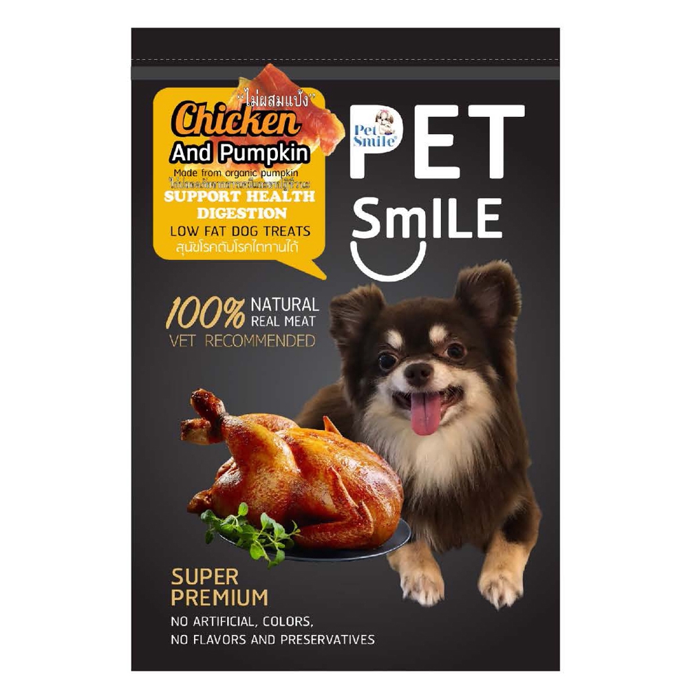Pet Smile Chicken and Pumpkin ขนมสุนัข เนื้ออกไก่และฟักทองอบแห้ง ช่วยระบบขับถ่าย สุนัขโรคตับ/ไต ทานได้ (50g)