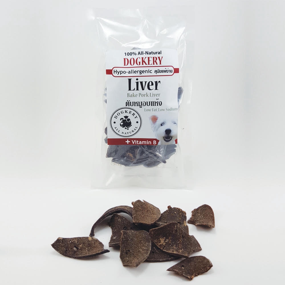 DOGKERY OVEN DRIED Pork Liver Bake ตับหมูอบแห้ง ขนมสำหรับสุนัข (60g)