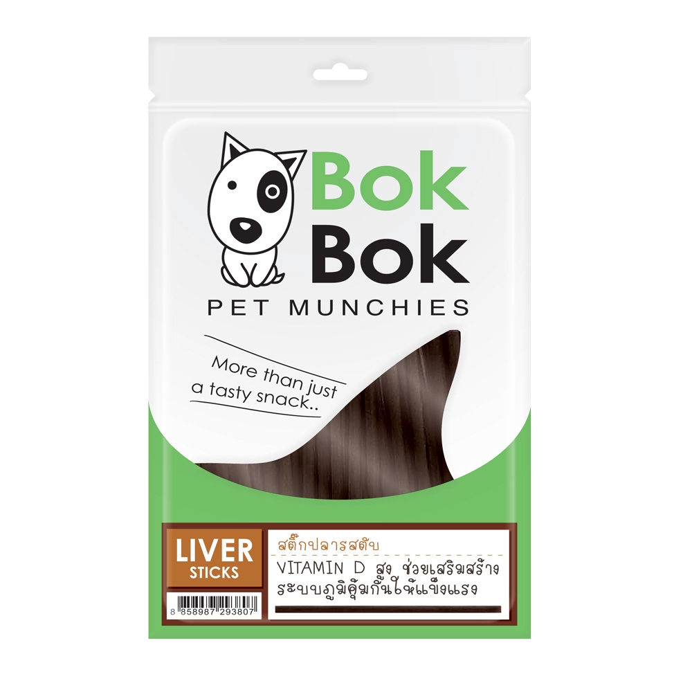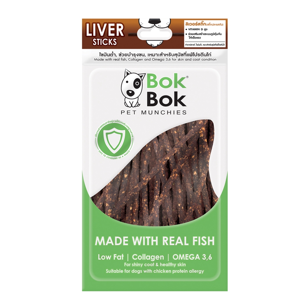Bok Bok ขนมสุนัข สติ๊กปลารสตับ ช่วยเสริมสร้างระบบภูมิคุ้มกันให้แข็งแรง (50g)
