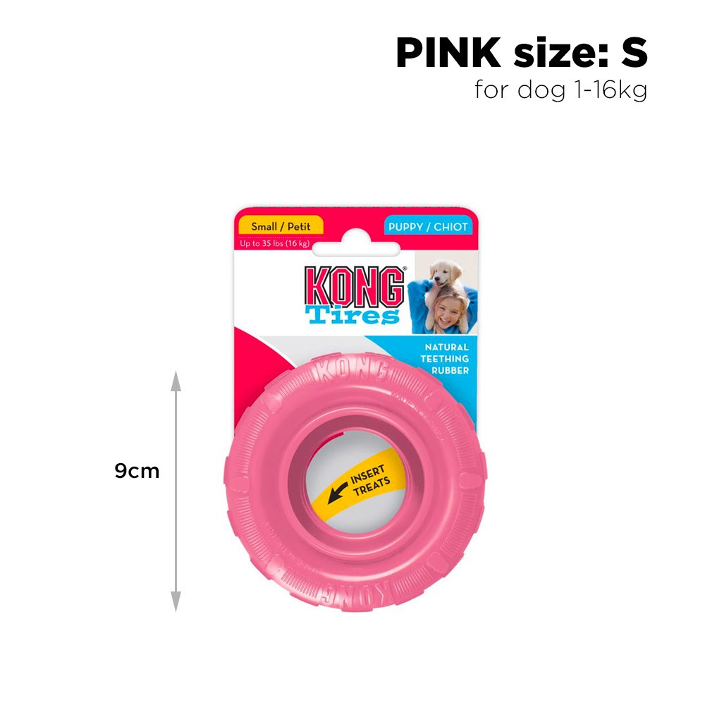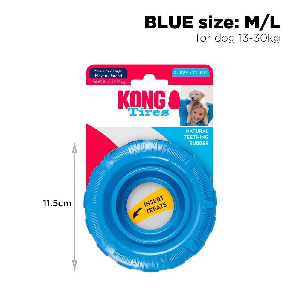 KONG Puppy Tires ของเล่นสุนัขทำจากยางธรรมชาตินิ่มขึ้น รูปทรงล้อรถ ไว้กัดเล่น ลับฟัน ฝึกพฤติกรรม ซ่อนขนมไว้ภายในได้ (S, M