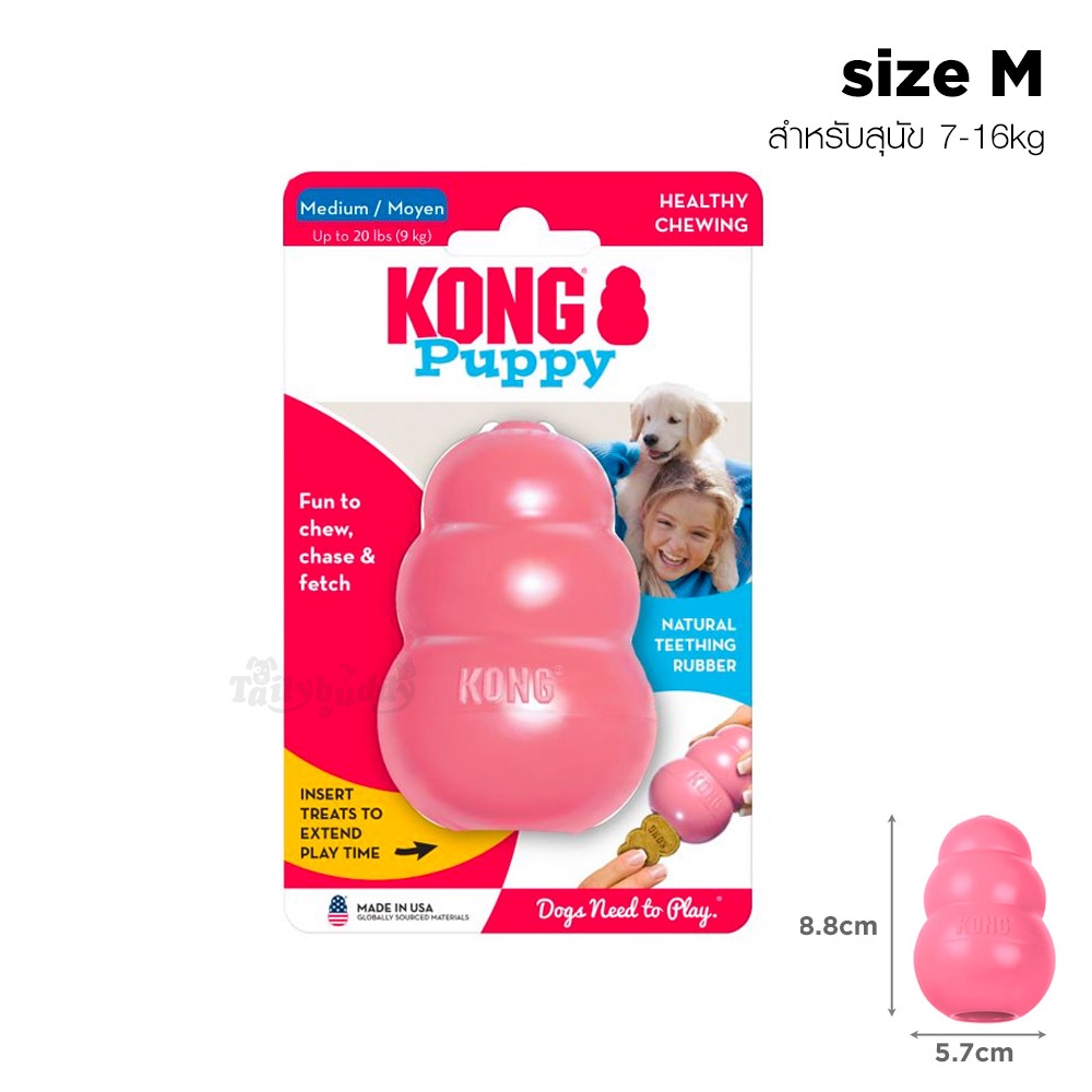 KONG Puppy ของเล่น ยางกลมกัดเล่นสำหรับสุนัขวัยเด็ก แกนกลางมีรูซ่อนขนมได้ ยางนิ่มทนทาน กัดเล่นได้ทั้งวัน