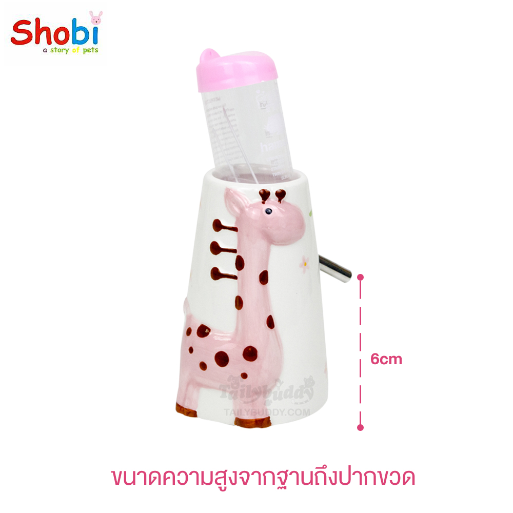 Shobi ชุดขวดน้ำ+ที่ตั้งขวดน้ำเซรามิก ลายยีราฟ สำหรับหนูแฮมสเตอร์ เม่น แคระ หรือ ชูการ์ไกลเดอร์