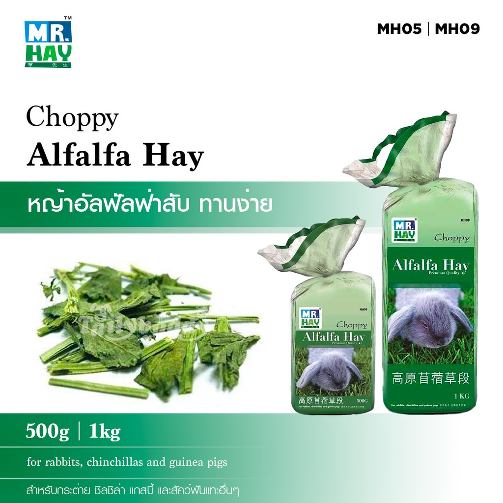 MR.Hay Choppy Alfalfa Hay - หญ้าอัฟฟาฟ่าสับขนาดพอดี สำหรับ กระต่าย ชินชิล่า หนู แกสบี้ MH05, MH09 (500g, 1kg)