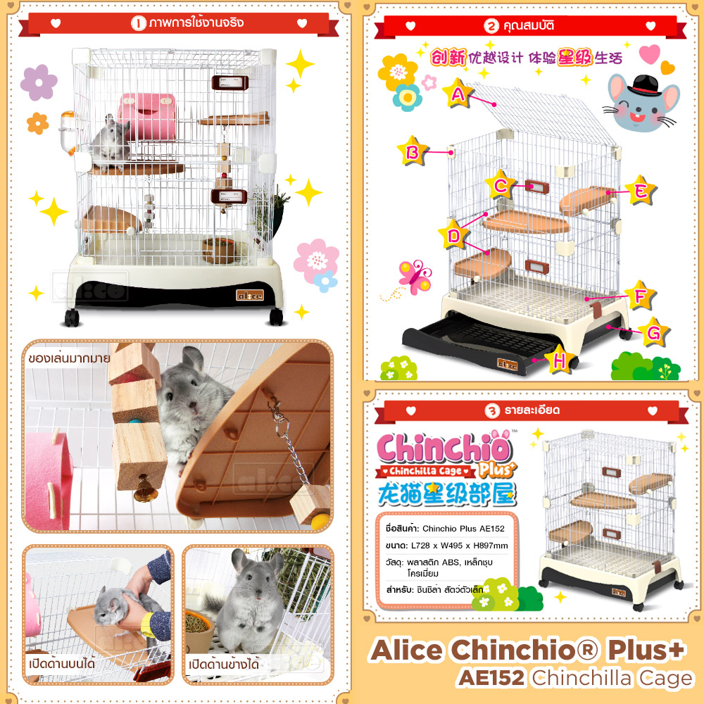 Alice ChinChio Plus กรงชินชิล่าขนาดใหญ่พิเศษ ดีไซน์สวยงาม มีประตูสองทาง ของเล่นมากมาย (AE152)