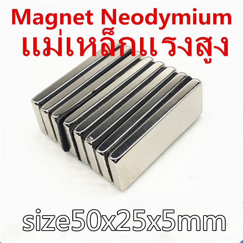 1ชิ้น แม่เหล็กแรงดึงดูดสูง 50x25x5 มม.แม่เหล็กแรงสูง ขนาด 50mm x 25mm x 5mm แม่เหล็ก นีโอไดเมียม รูปสี่เหลี่ยม 50x25x5mm