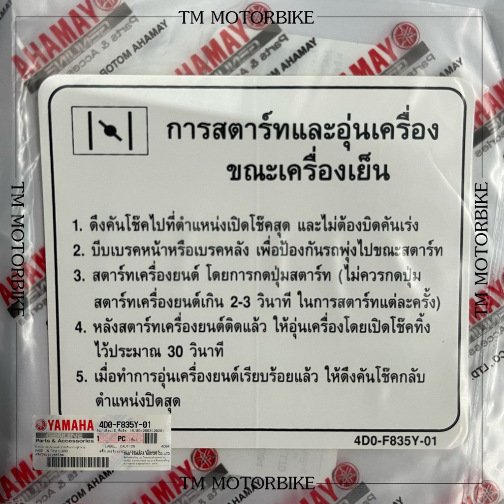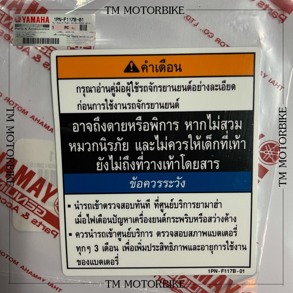 สติ๊กเกอร์คำเตือน (แท้) Yamaha