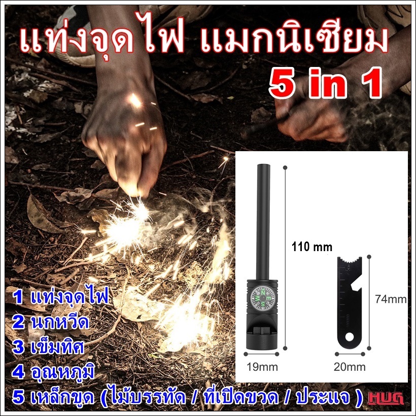 แท่งจุดไฟ 5 in1 แท่งแมกนีเซียม แมกนีเซียมจุดไฟ แท่งแมกนิเซียมจุดไฟ ที่จุดไฟเดินป่า ที่จุดไฟแมกนีเซียม ที่จุดไฟในป่า hug