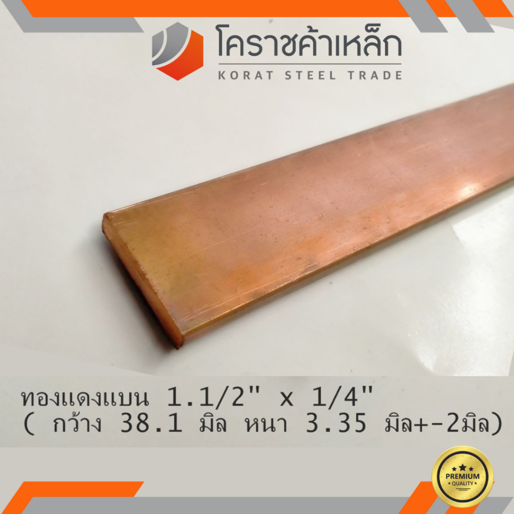 ทองแดง แบน กว้าง 1.1/2 นิ้ว หนา 1/4 นิ้ว เกรด C1100(ประมาณ38.1 มิลหนา6.35 มิล)Copper Flat Bar ความยาวดูที่ตัวเลือกสินค้า