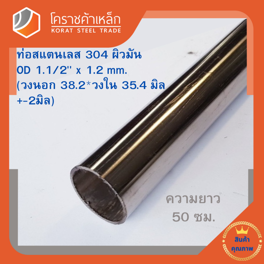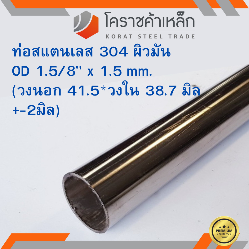 สแตนเลส ท่อกลม ผิวมัน วัดนอก 1.5/8 นิ้ว หนา 1.5 มิล เกรด 304 Stainless Pipe ความยาวดูที่ตัวเลือกสินค้า