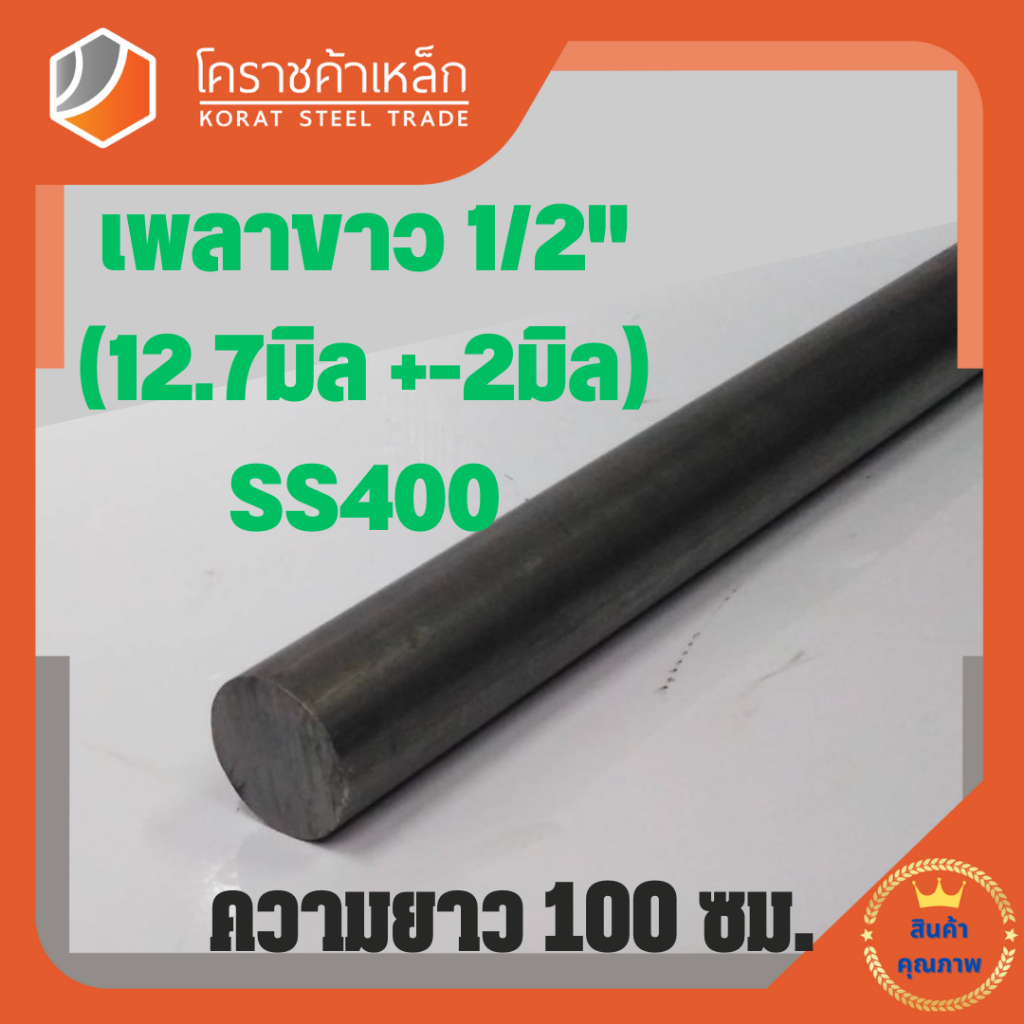 เหล็กเพลา กลม SS400 1/2 นิ้ว (ประมาณ 12.7 มิล ) เหล็กเพลาขาว SS400 Steel Round Bar ความยาวดูที่ตัวเลือกสินค้า