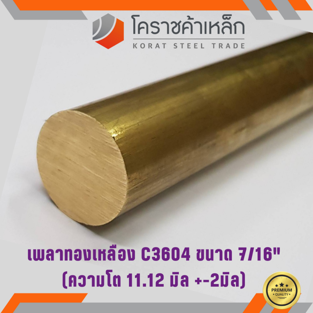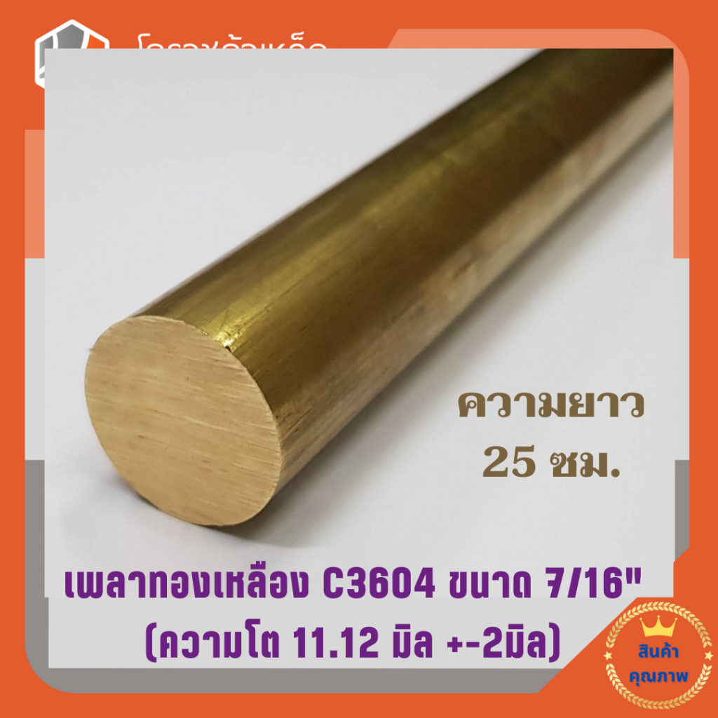 ทองเหลือง เพลากลม 7/16 นิ้ว เกรด C3604 (ประมาณ 11.11 มิล ) Brass Round Bar ความยาวดูที่ตัวเลือกสินค้า