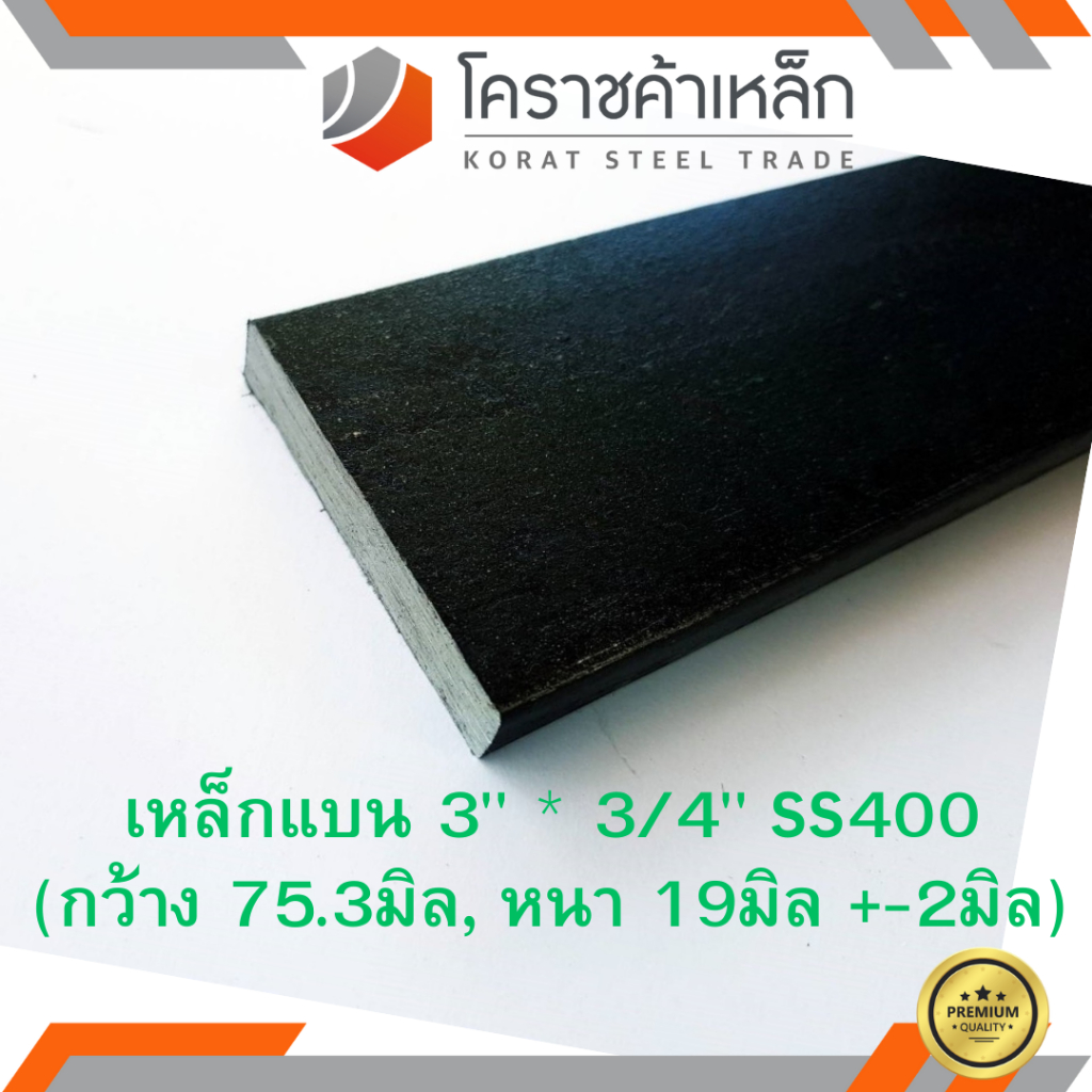 เหล็กแบน SS400 กว้าง 3 นิ้ว หนา 3/4 นิ้ว (*ประมาณ 75.3 มิล หนา 19 มิล ) แบนขาว Flat Bar ความยาวดูที่ตัวเลือกสินค้า