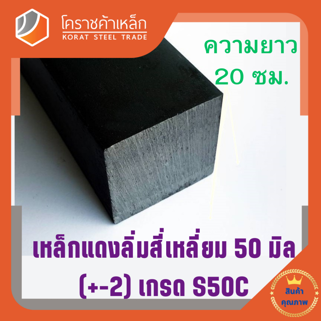 เหล็กสี่เหลี่ยม ตัน S50C 50 มิล สี่เหลี่ยมแดง S50C square Bar ความยาวดูที่ตัวเลือกสินค้า