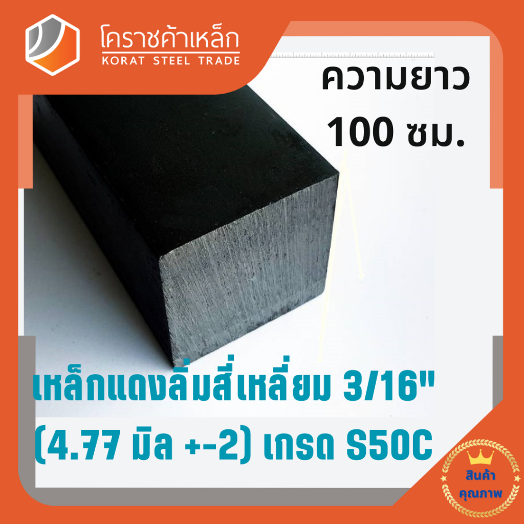 เหล็กสี่เหลี่ยม ตัน S50C 3/16 นิ้ว (ประมาณ 4.75 มิล ) สี่เหลี่ยมแดง S50C square Bar ความยาวดูที่ตัวเลือกสินค้า
