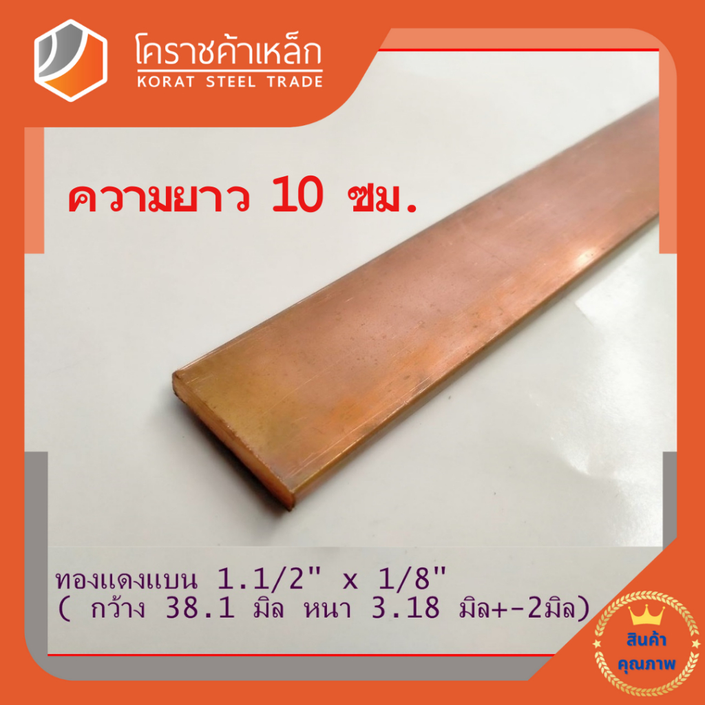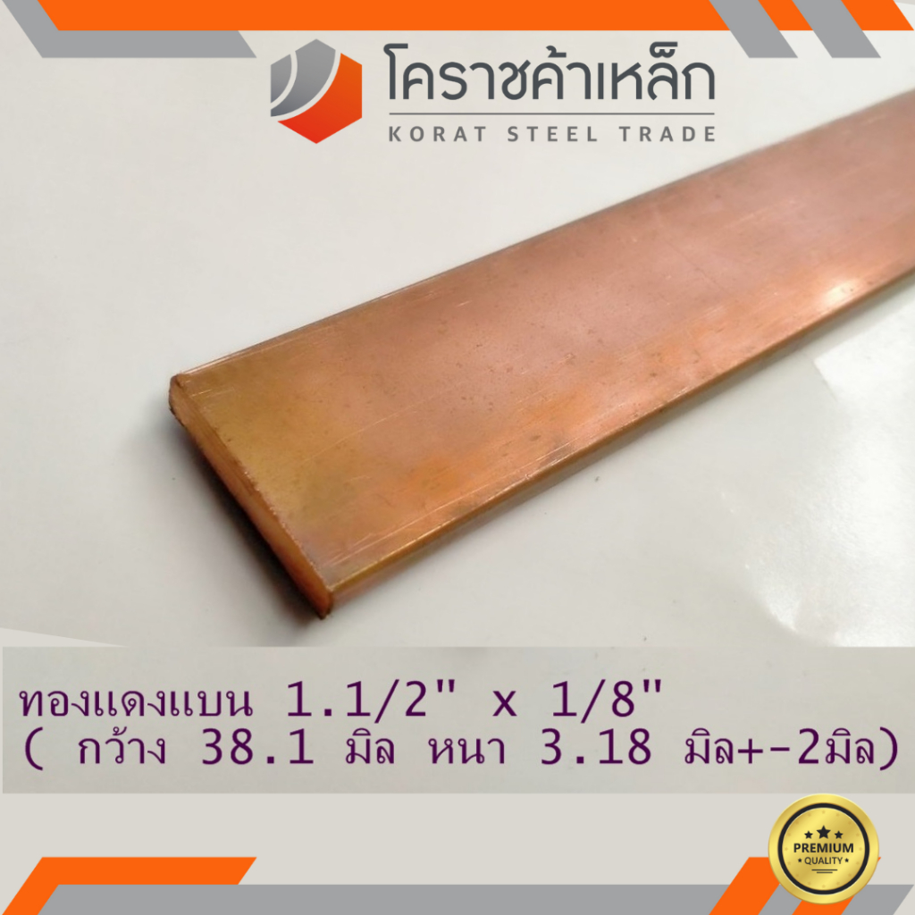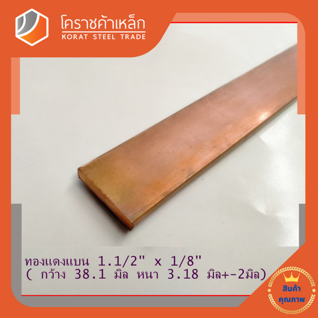 ทองแดง แบน กว้าง 1.1/2 นิ้ว หนา 1/8 นิ้ว เกรด C1100(ประมาณ38.1 มิลหนา3.17 มิล)Copper Flat Bar ความยาวดูที่ตัวเลือกสินค้า