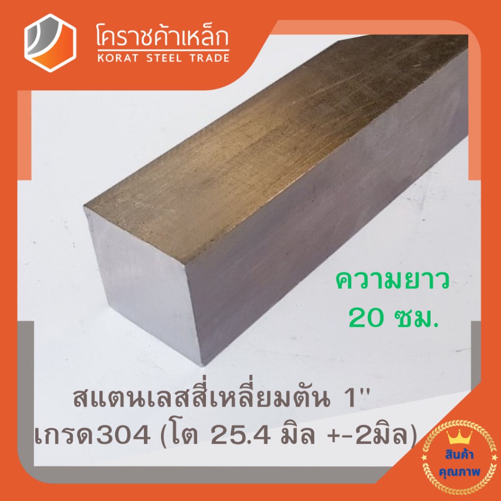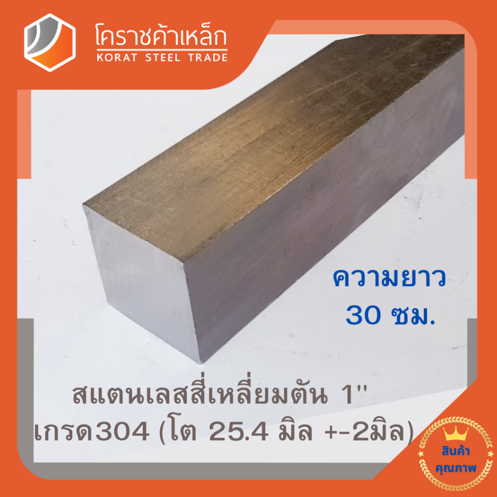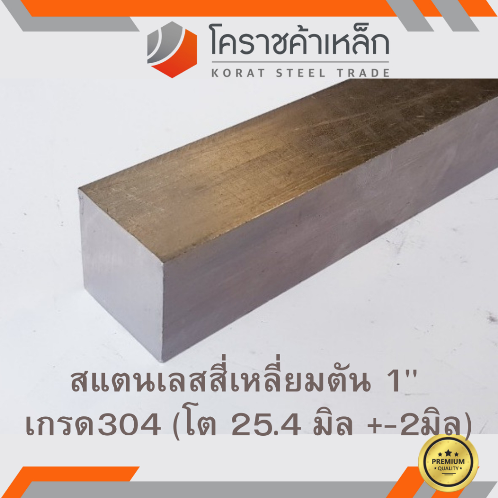สแตนเลส สี่เหลี่ยมตัน 1 นิ้ว เกรด 304 (ประมาณ 25.4 มิล) Stainless square Bar ความยาวดูที่ตัวเลือกสินค้า