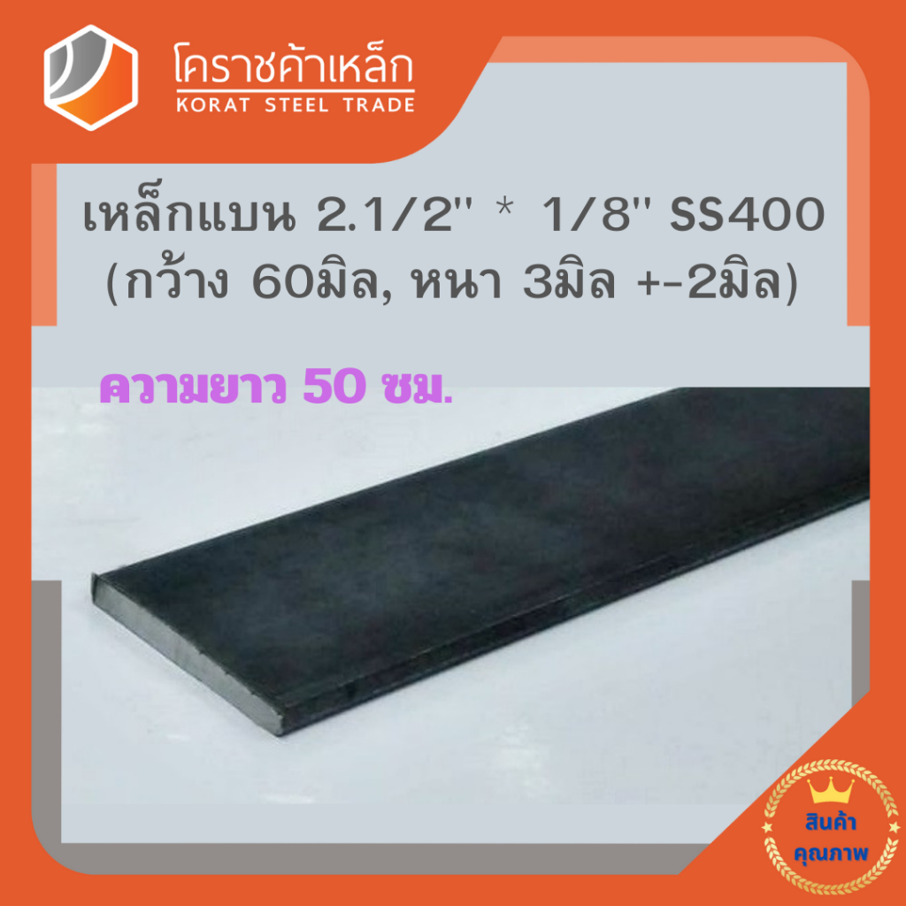เหล็กแบน SS400 กว้าง 2.1/2 นิ้ว หนา 1/8 นิ้ว (*ประมาณ 60 มิล หนา 2.5 มิล ) แบนขาว Flat Bar ความยาวดูที่ตัวเลือกสินค้า