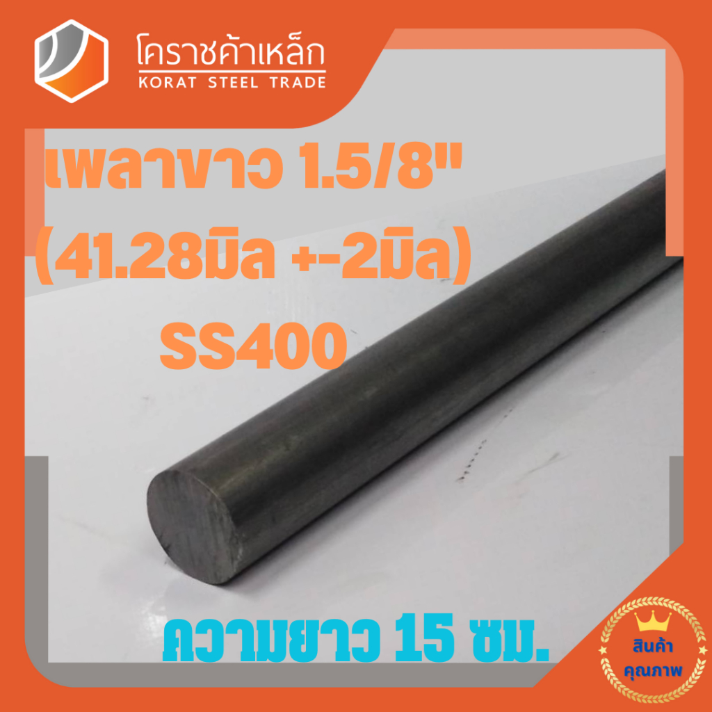 เหล็กเพลา กลม SS400 1.5/8 นิ้ว (ประมาณ 41.28 มิล ) เหล็กเพลาขาว SS400 Steel Round Bar ความยาวดูที่ตัวเลือกสินค้า