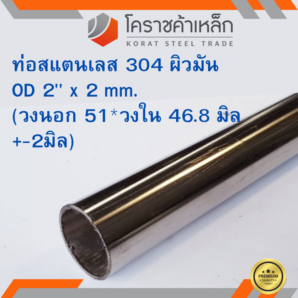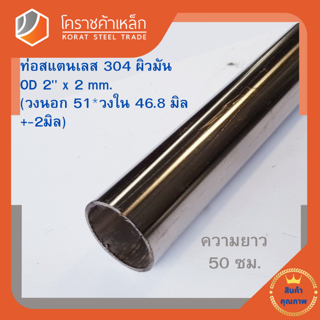 สแตนเลส ท่อกลม ผิวมัน วัดนอก 2 นิ้ว หนา 2 มิล เกรด 304 Stainless Pipe ความยาวดูที่ตัวเลือกสินค้า