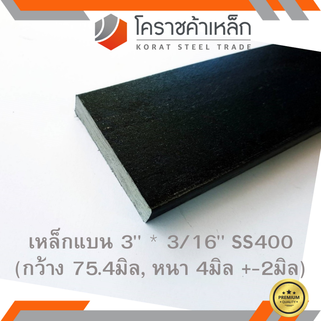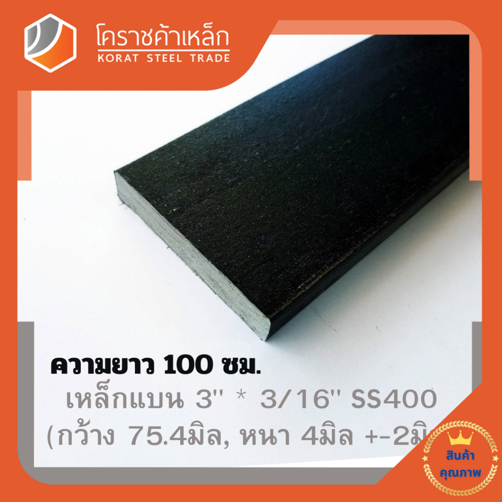 เหล็กแบน SS400 กว้าง 3 นิ้ว หนา 3/16 นิ้ว (*ประมาณ 75.4 มิล หนา 4 มิล ) แบนขาว Flat Bar ความยาวดูที่ตัวเลือกสินค้า