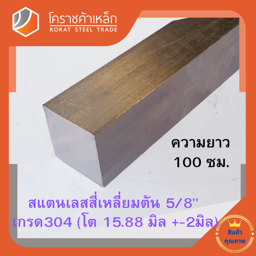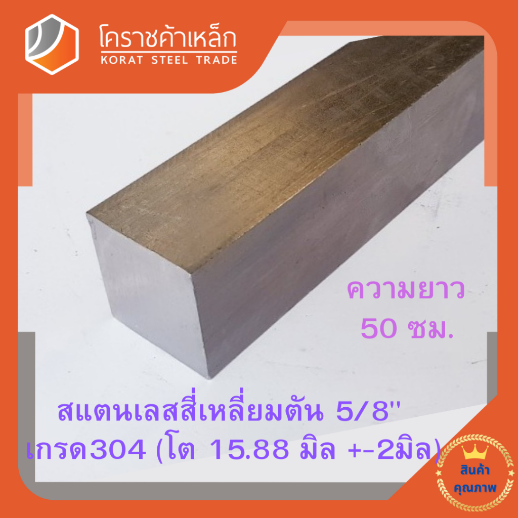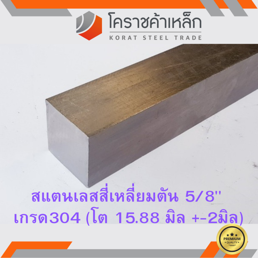 สแตนเลส สี่เหลี่ยมตัน 5/8 นิ้ว เกรด 304 (ประมาณ 15.88 มิล) Stainless square Bar ความยาวดูที่ตัวเลือกสินค้า