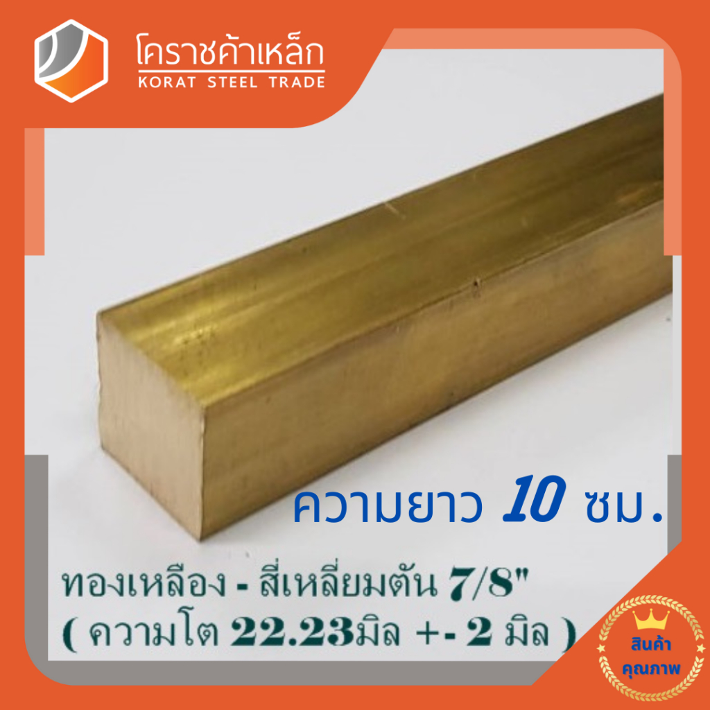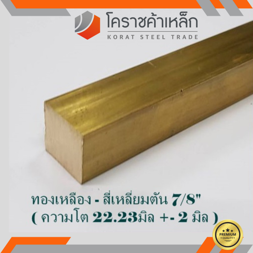 ทองเหลือง สี่เหลี่ยมตัน 7/8 นิ้ว เกรด C3604 (ประมาณ 22.22 มิล ) Brass square Bar ความยาวดูที่ตัวเลือกสินค้า