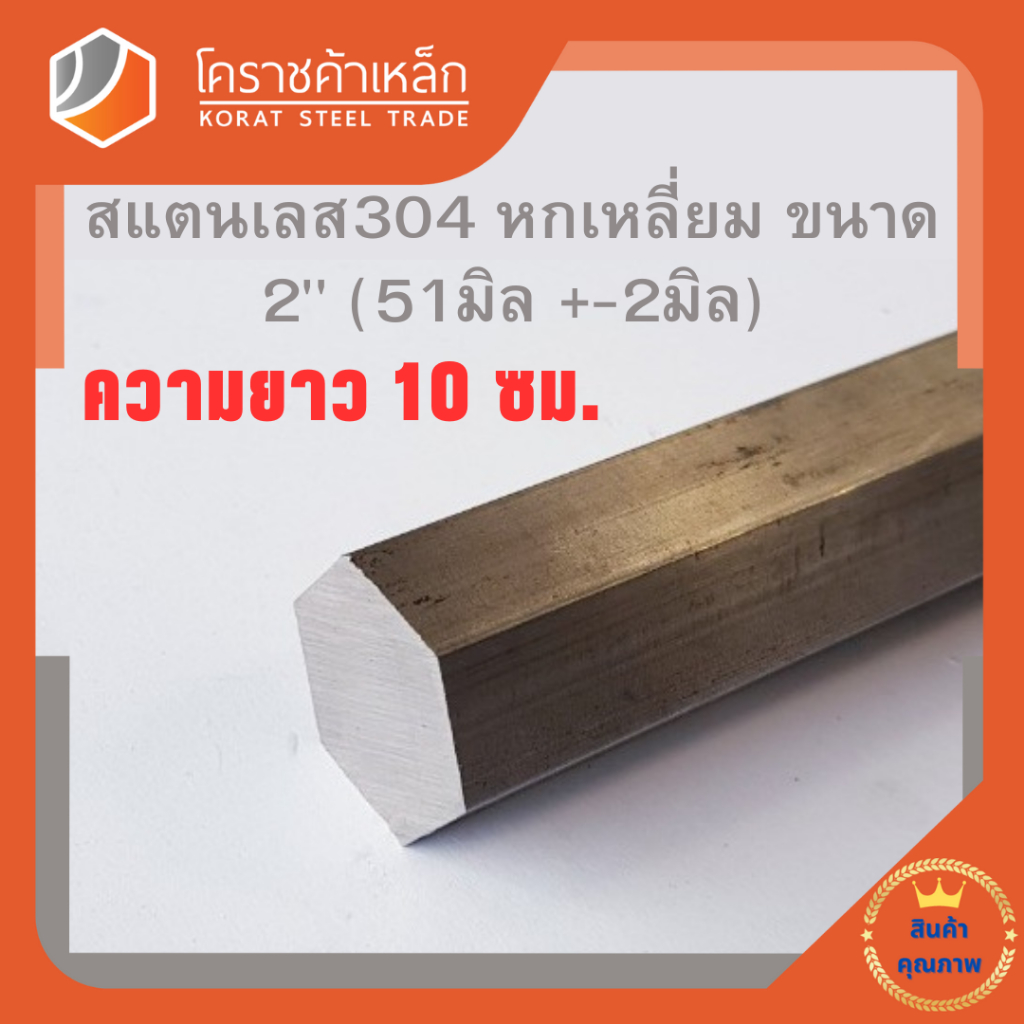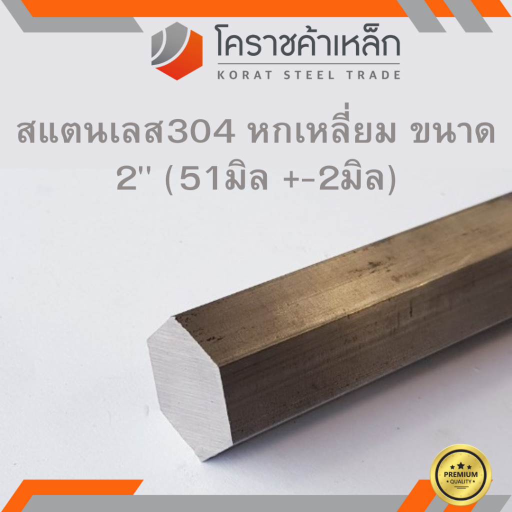 สแตนเลส หกเหลี่ยม ขนาด 2 นิ้ว เกรด 304 (ประมาณ 51 มิล ) Stainless Hexagon ความยาวดูที่ตัวเลือกสินค้า
