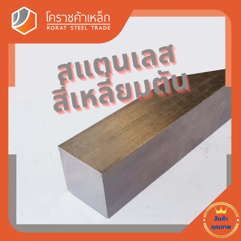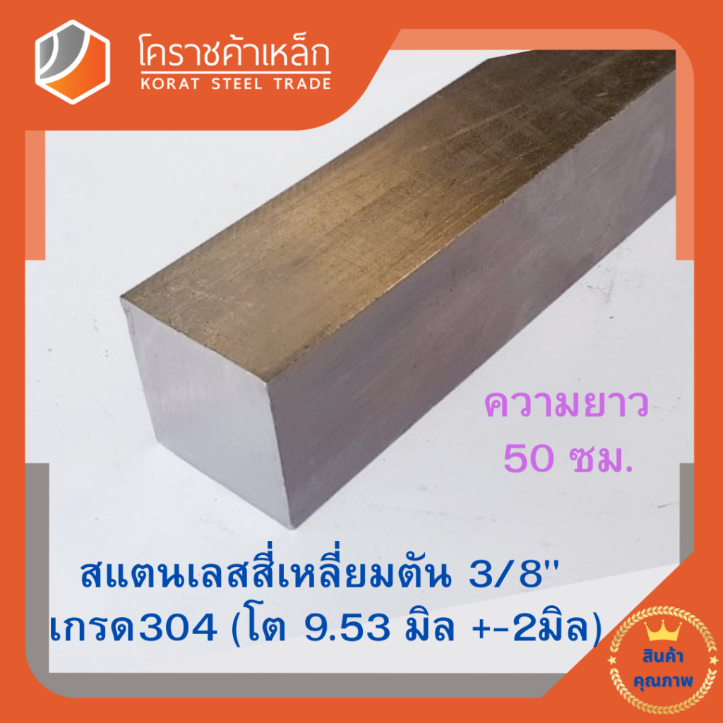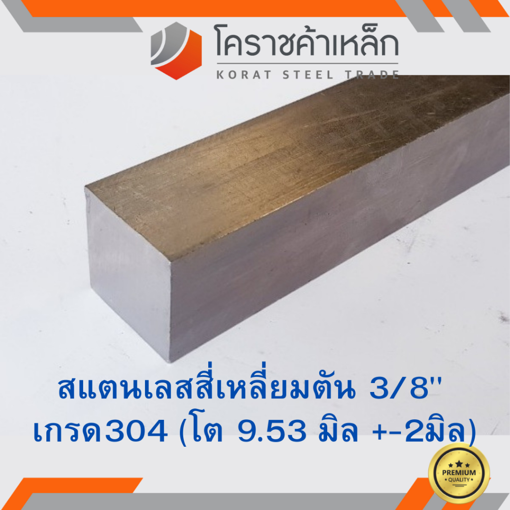 สแตนเลส สี่เหลี่ยมตัน 3/8 นิ้ว เกรด 304 (ประมาณ 9.53 มิล) Stainless square Bar ความยาวดูที่ตัวเลือกสินค้า