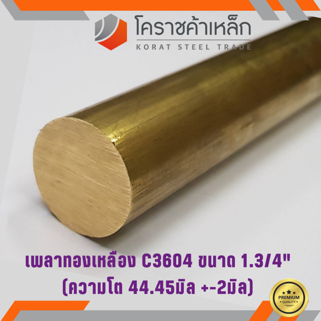 ทองเหลือง เพลากลม 1.3/4 นิ้ว เกรด C3604 (ประมาณ 44.45 มิล ) Brass Round Bar ความยาวดูที่ตัวเลือกสินค้า