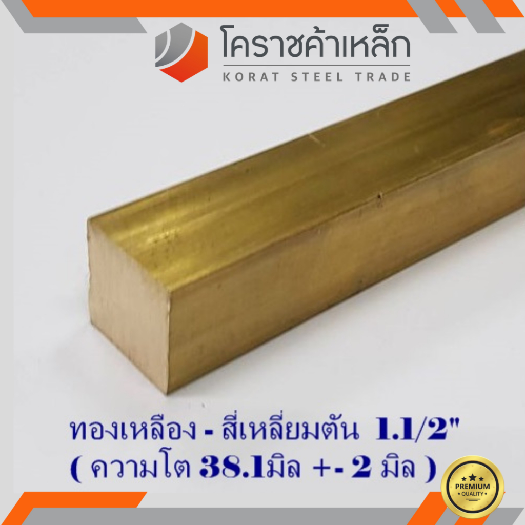 ทองเหลือง สี่เหลี่ยมตัน 1.1/2 นิ้ว เกรด C3604 (ประมาณ 38.1 มิล ) Brass square Bar ความยาวดูที่ตัวเลือกสินค้า