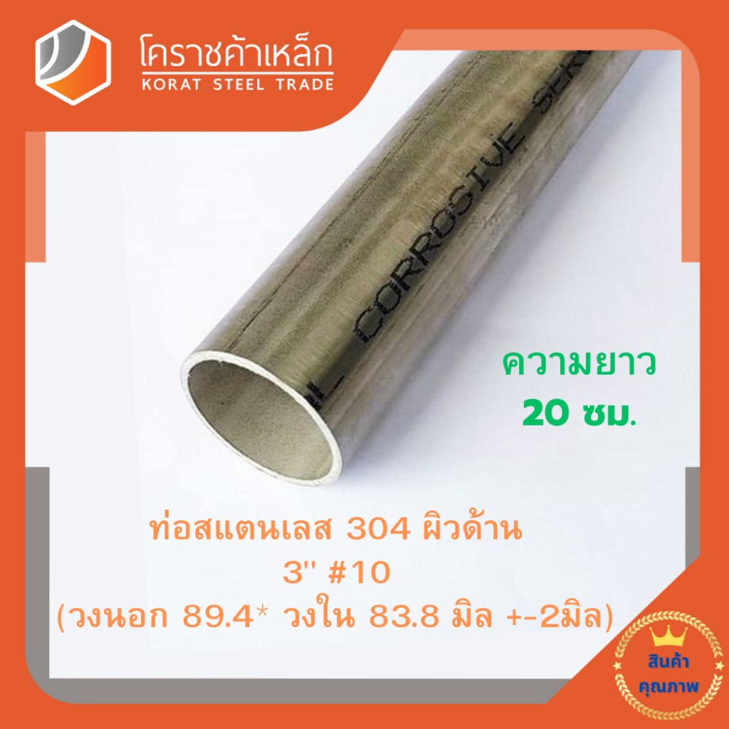 สแตนเลส ท่อกลม ผิวด้าน 3 นิ้ว เบอร์ 10 มีตะเข็บ เกรด 304 Stainless schedule Pipe ความยาวดูที่ตัวเลือกสินค้า