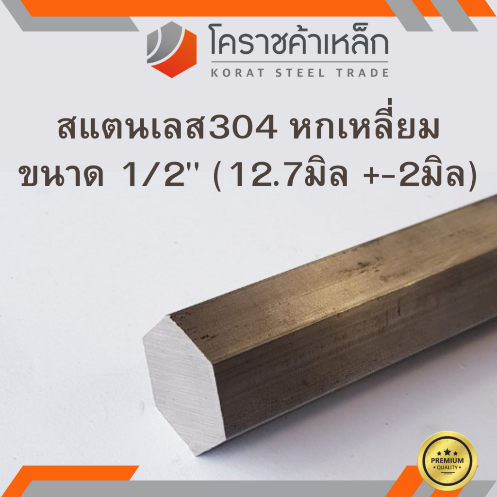สแตนเลส หกเหลี่ยม ขนาด 1/2 นิ้ว เกรด 304 (ประมาณ 12.7 มิล ) Stainless Hexagon ความยาวดูที่ตัวเลือกสินค้า