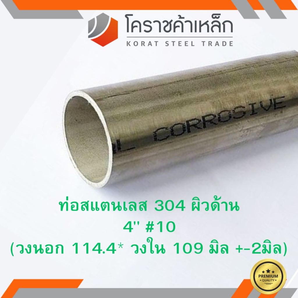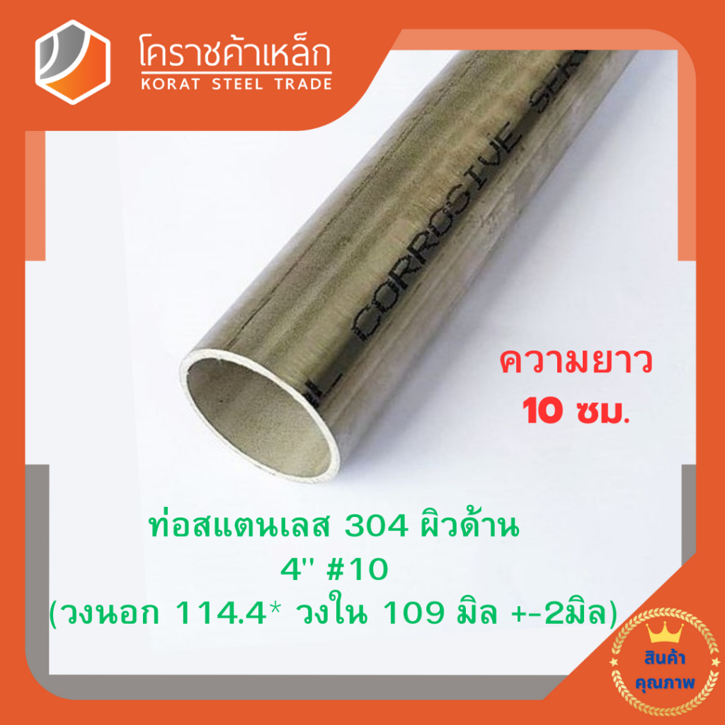 สแตนเลส ท่อกลม ผิวด้าน 4 นิ้ว เบอร์ 10 มีตะเข็บ เกรด 304 Stainless schedule Pipe ความยาวดูที่ตัวเลือกสินค้า
