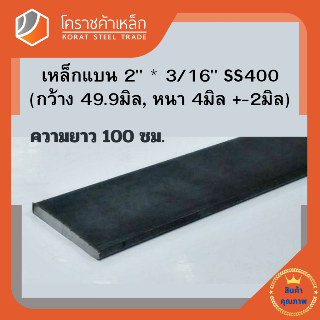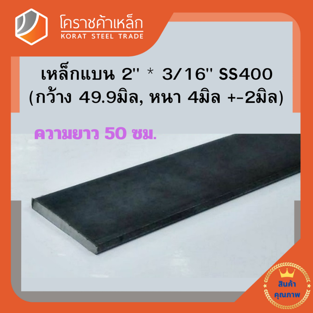 เหล็กแบน SS400 กว้าง 2 นิ้ว หนา 3/16 นิ้ว (*ประมาณ 45 มิล หนา 3.2 มิล ) แบนขาว Flat Bar ความยาวดูที่ตัวเลือกสินค้า