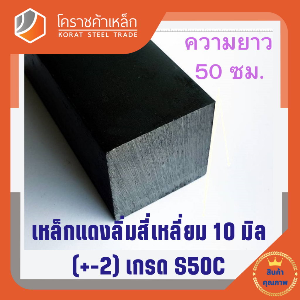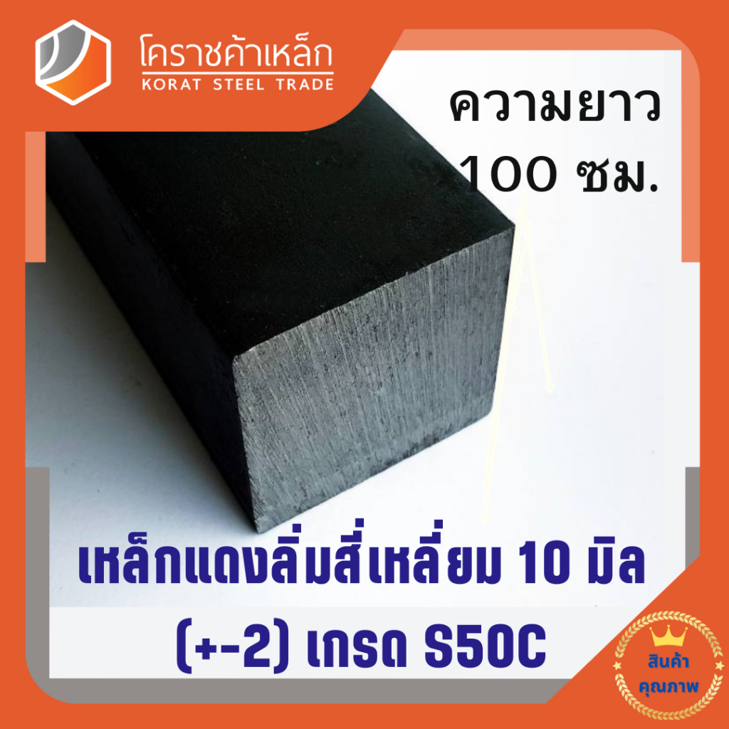 เหล็กสี่เหลี่ยม ตัน S50C 10 มิล สี่เหลี่ยมแดง S50C square Bar ความยาวดูที่ตัวเลือกสินค้า